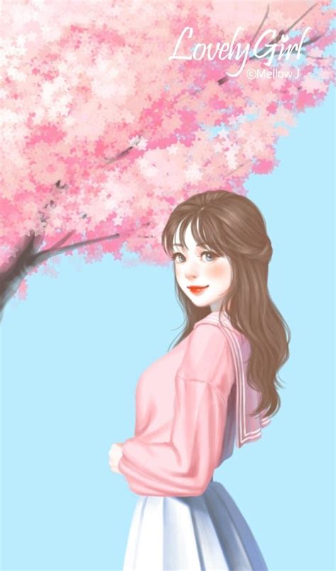 cute korean girl cartoon wallpaper (with red dots to represent the red and white arrows)